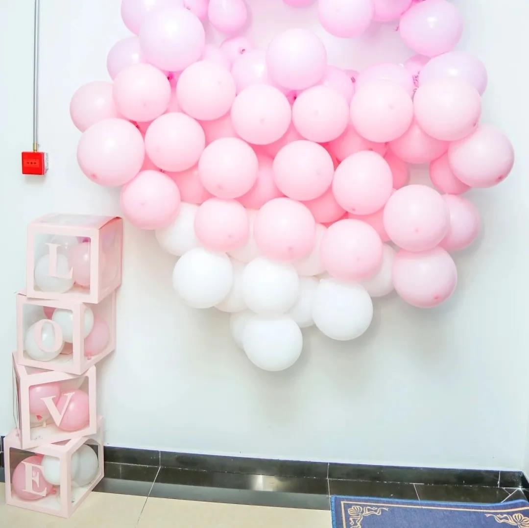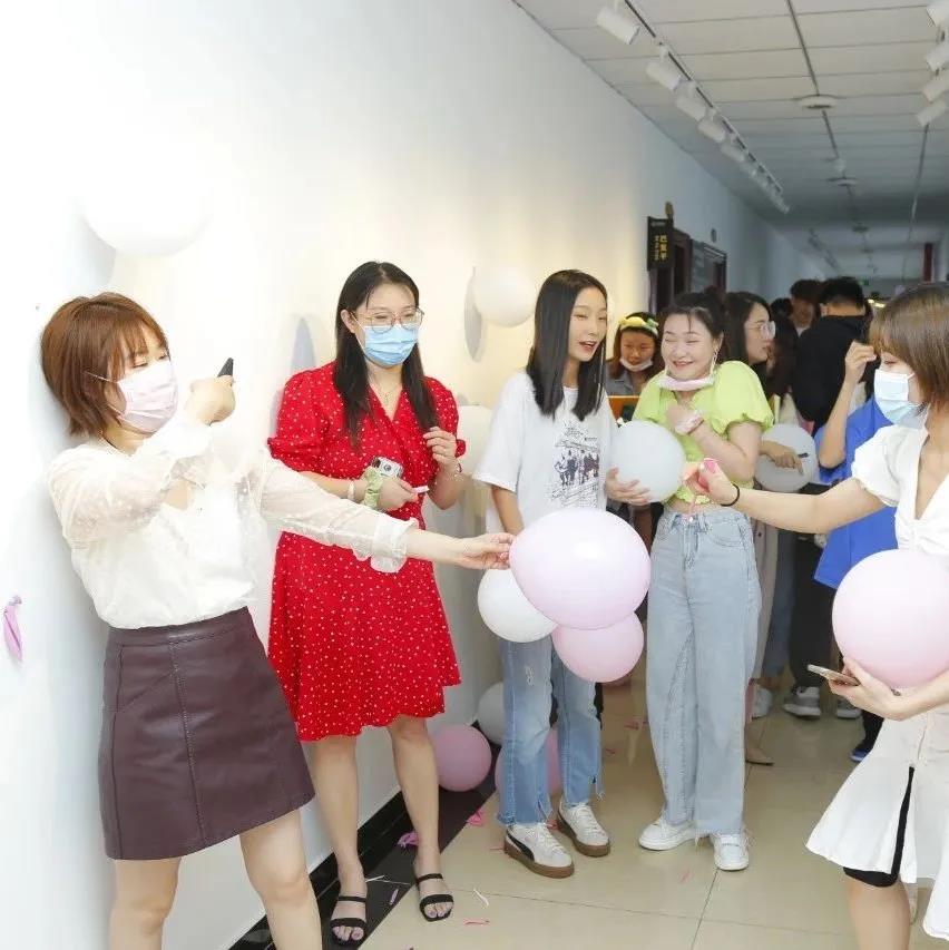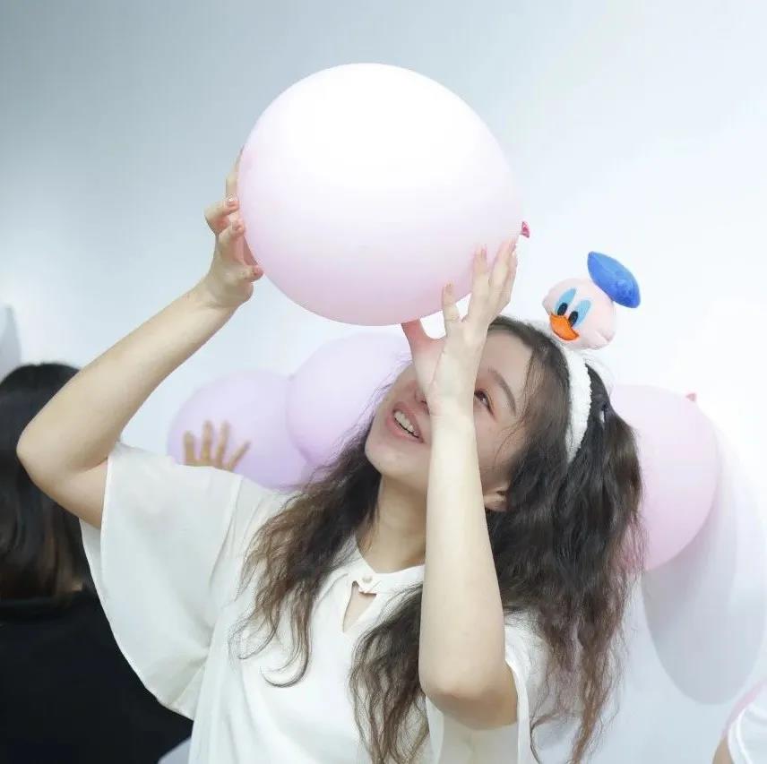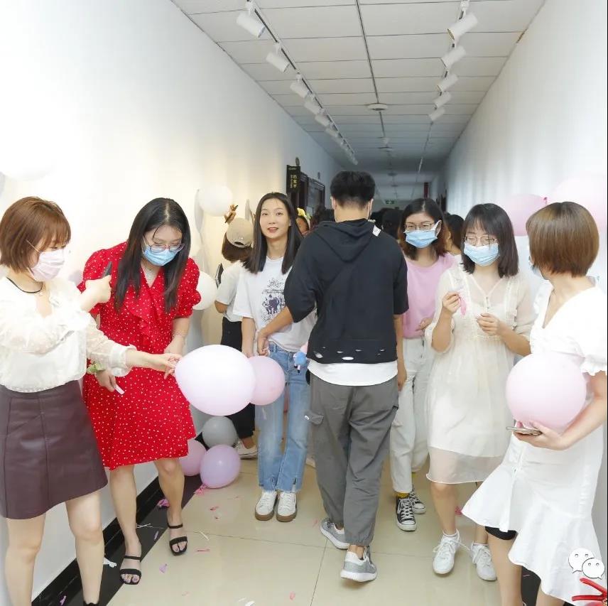 人們穿行在布滿了粉白相間氣球的樓道,讓這個(gè)節(jié)日充滿了儀式感。