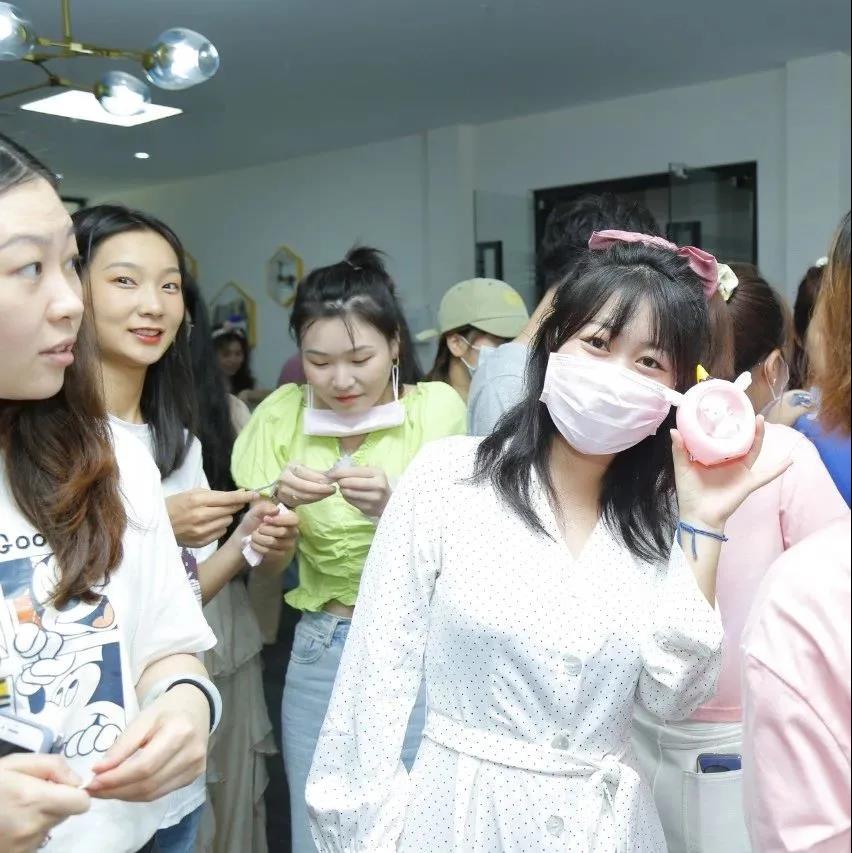 女孩子們的蝴蝶結(jié),高跟鞋;綜管部整齊劃一的粉色T恤;即便是男生,背包上的粉紅豹也透著可愛。